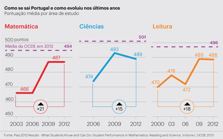 "Relatório PISA 2012 sobre Matemática, Leitura e Ciências refere que Portugal é um dos exemplos de evolução positiva. Resultados melhoram sobretudo a Matemática."